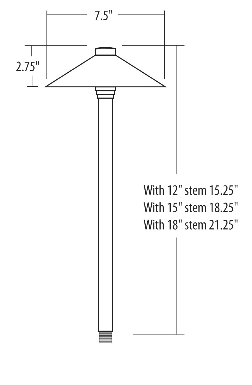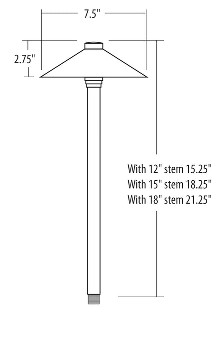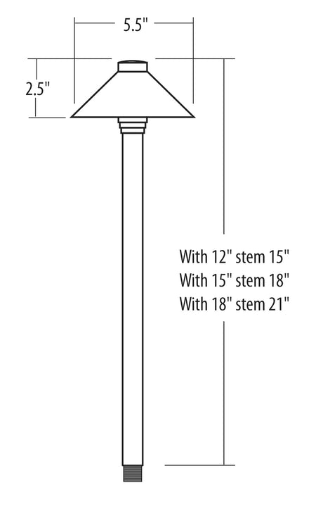 Sollos 913028 Straight Path Light features a 4" hat and 15" stem in a textured black finish. Fixture only. Built for durability with waterproof connectors and tool-less maintenance. Ideal for outdoor landscape lighting.