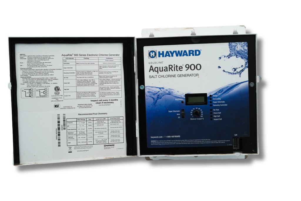 • Refurbished AquaRite 900 salt chlorination system designed for residential in-ground pools up to 40,000 gallons.