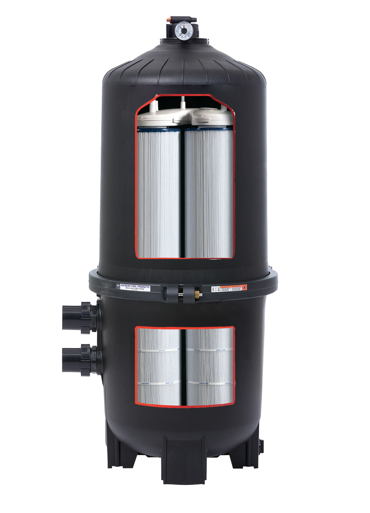Provides 700 sq. ft. of total filtration area through a dual-quad cluster design, maximizing debris-holding capacity and extending cleaning intervals.