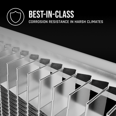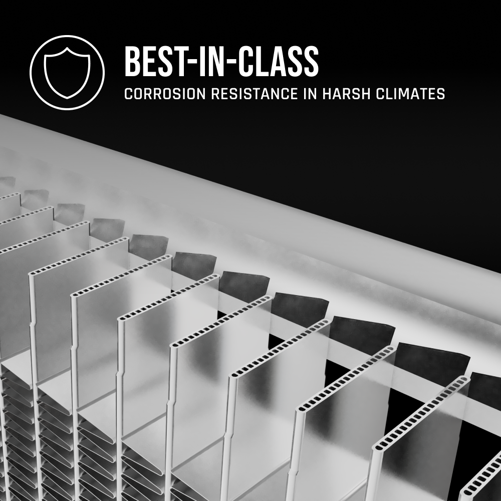 • Industry-first Microchannel Heat Exchanger technology delivers improved heat transfer, reduced refrigerant volume, and enhanced corrosion resistance