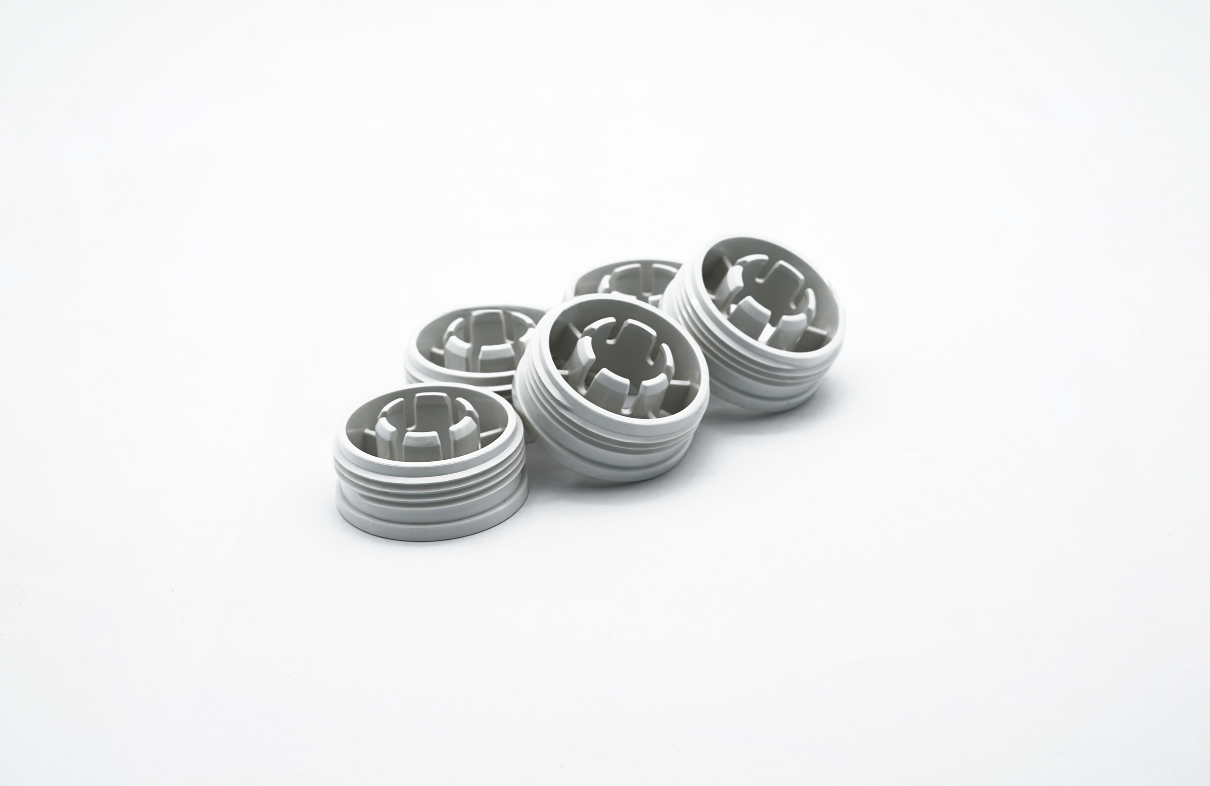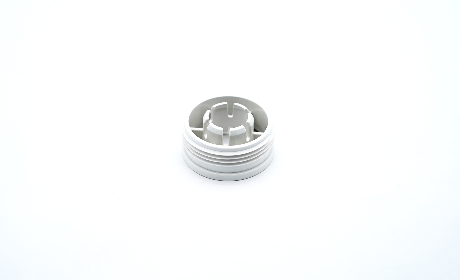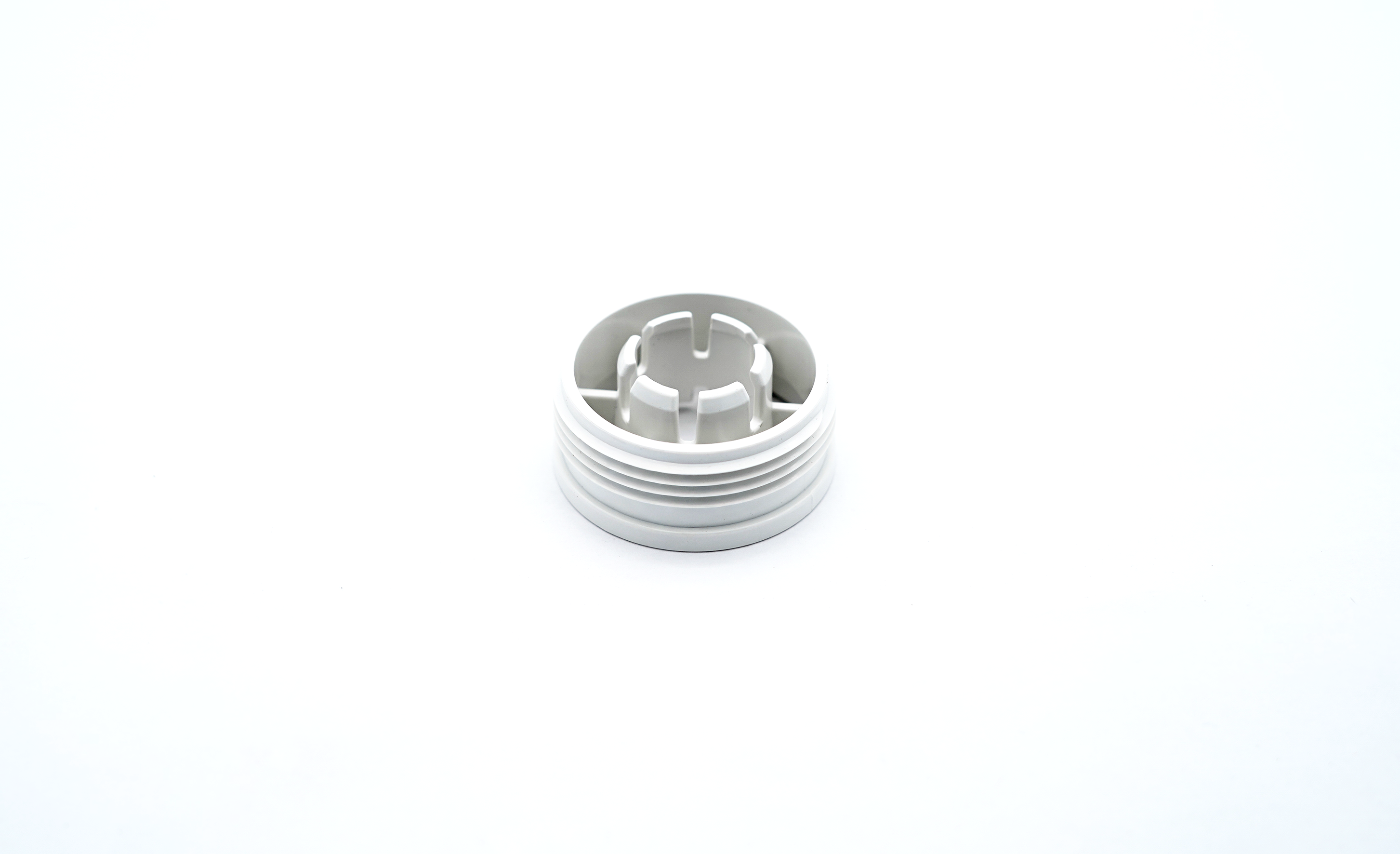 Threaded male design (white plastic or composite material) for secure, sealed integration