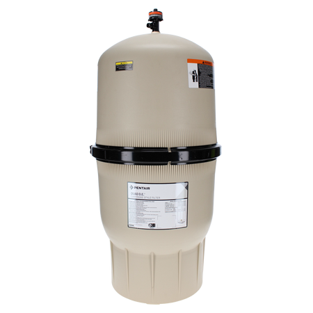 The Pentair EC-188593 Quad D.E. 80 sq ft Cartridge Style Filter combines the superior water clarity of diatomaceous earth filtration with the convenience of a cartridge-style design. Featuring four high-capacity D.E. cartridges and 80 square feet of effective filtration area, this system removes particles as small as 5 microns. Engineered with a fiberglass-reinforced polypropylene tank and optimized internal flow path, it delivers exceptional hydraulic efficiency and extended cleaning cycles for residential pool applications.