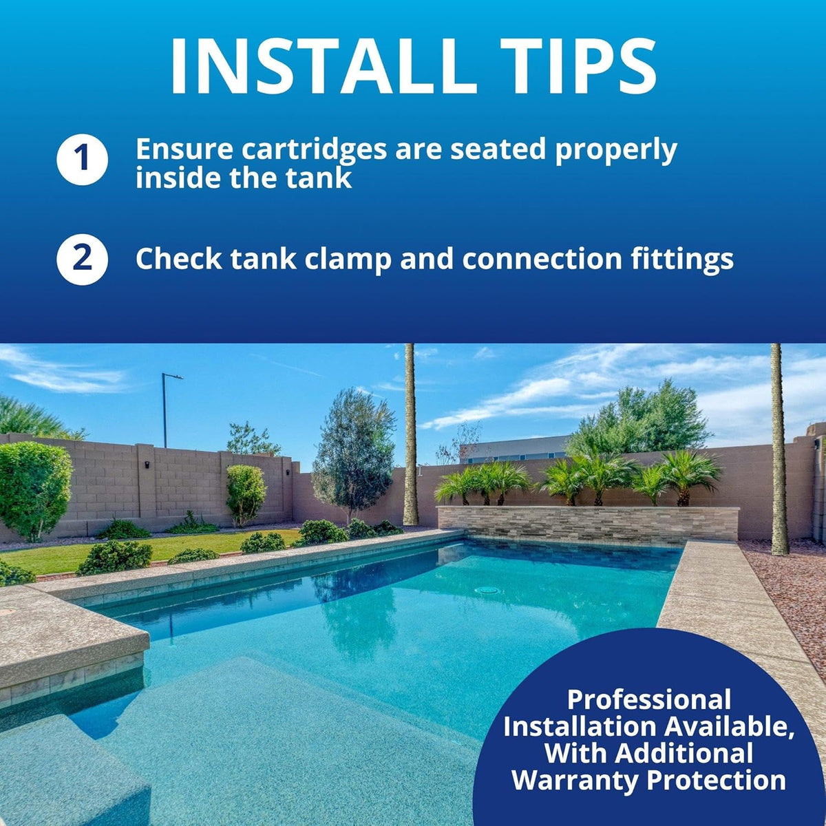 Constructed with a corrosion-resistant, fiberglass-reinforced tank, the Clean & Clear Plus 320 is built for durability under continuous exposure to treated pool water and outdoor conditions. The clamp ring design enables straightforward access for routine cartridge removal and rinsing, reducing maintenance time. When installed within a properly sized circulation system, the EC-160340 delivers reliable water clarity and efficient filtration performance for residential pool applications.