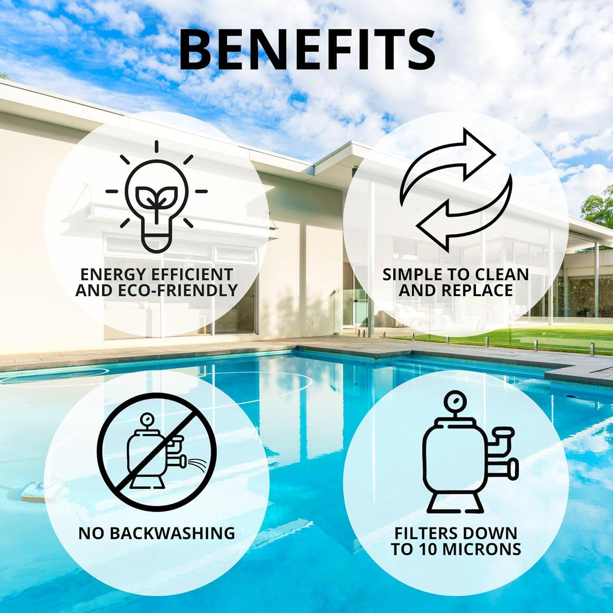 • Captures fine particles to maintain clear, clean pool water.