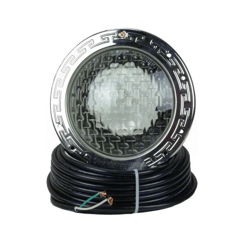 Operating on a low-voltage 12-volt system and using approximately 26 watts of power, the light provides significant energy savings compared with incandescent pool lights. The precision reflector and lens geometry distribute light evenly across the pool floor, minimizing dark areas and improving overall illumination.