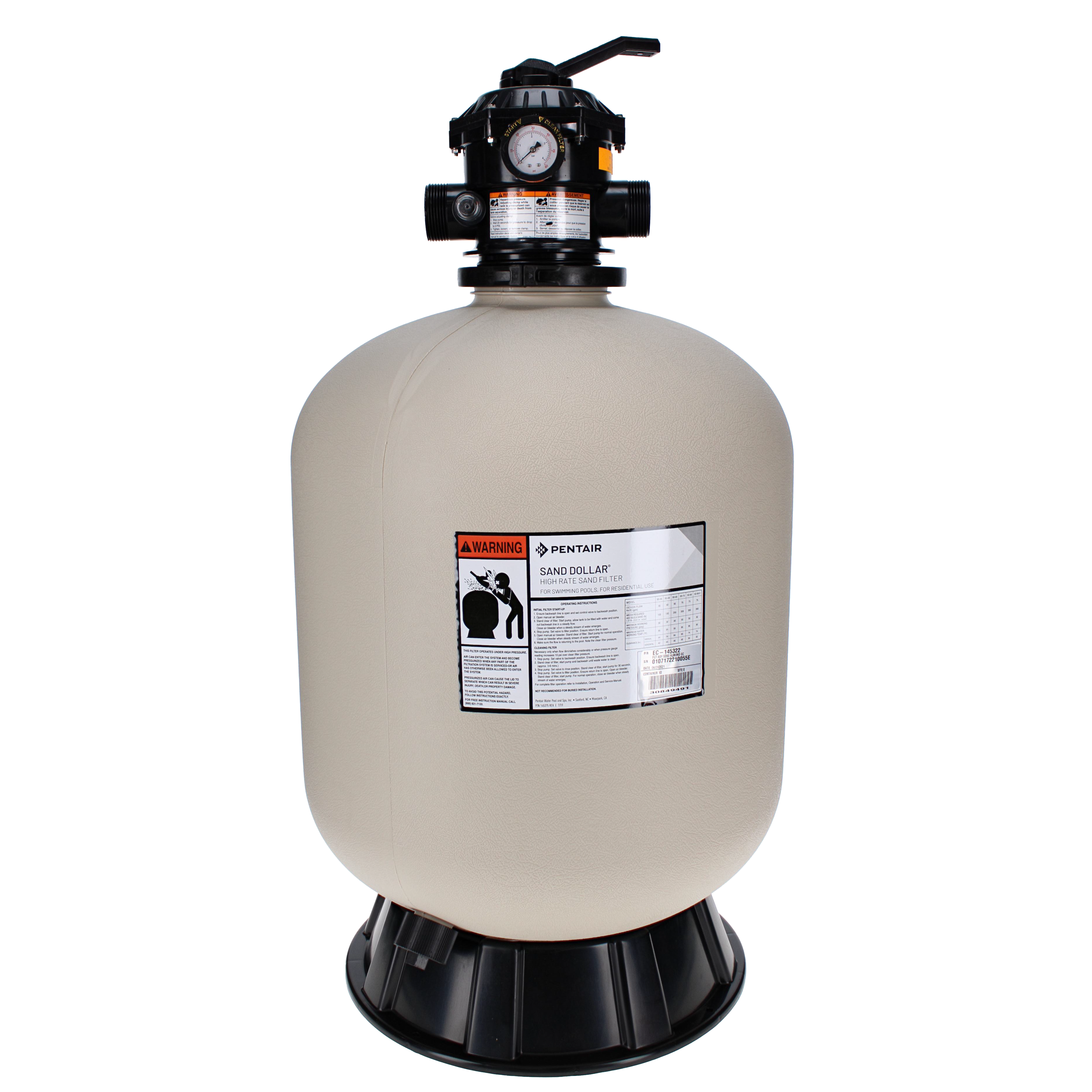 The Pentair EC-145322 Sand Dollar SD60 is a 22.5-inch top mount fiberglass sand filter engineered for dependable residential pool filtration. Featuring 2.3 square feet of effective filtration area and a 60 GPM flow rate, this model supports up to 43,200 gallons at a 12-hour turnover. Designed for long service life and efficient debris removal, the SD60 delivers consistent water clarity with minimal maintenance.