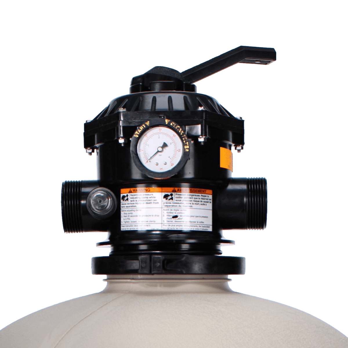 • 22.5-inch diameter top mount sand filter with 2.3 sq ft filtration area.