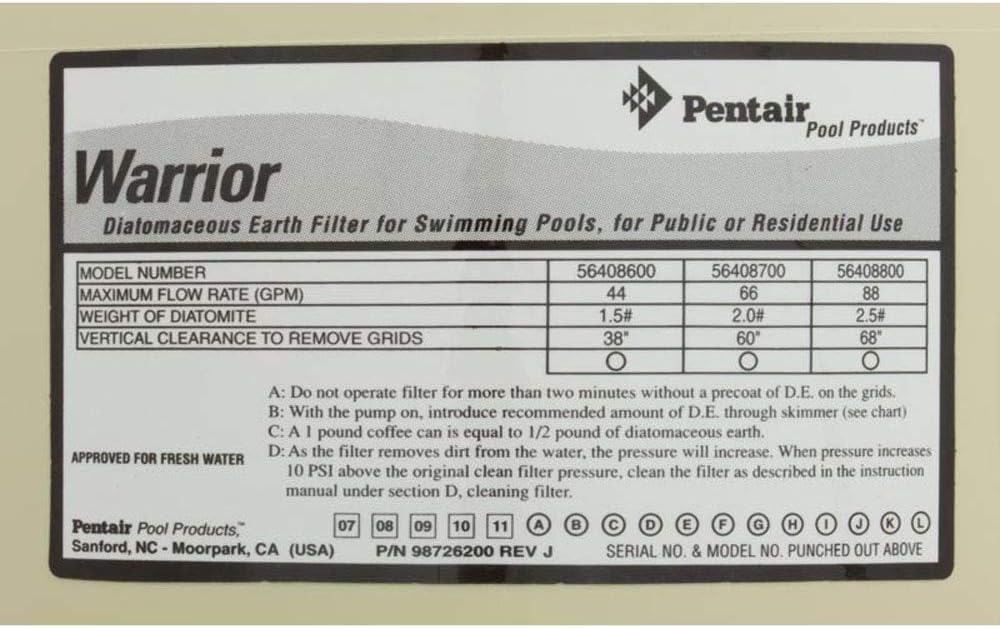 • Replacement filter lid designed for Pentair Warrior D.E. filter systems rated at 44 and 88 GPM.