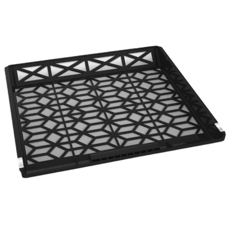 Surface debris collected is visible through the clear viewing window to see when the large-capacity debris tray needs to be emptied, then simply slide out, shake off and spray down the tray.