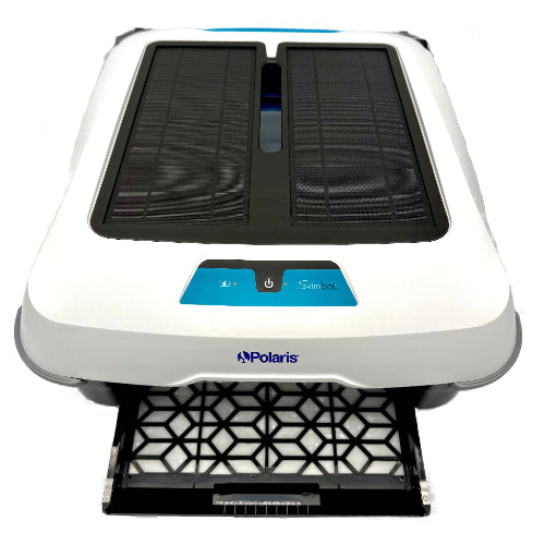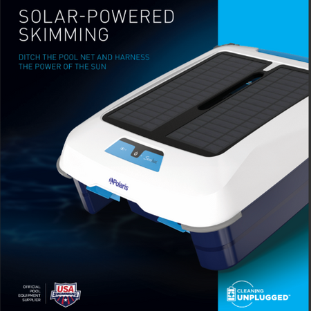 The Polaris Skimbot® Solar Surface Cleaner is a cutting-edge, solar-powered robotic skimmer designed to effortlessly remove floating debris from your pool's surface. With its autonomous operation and eco-friendly design, Skimbot ensures your pool remains pristine without the need for cords, hoses, or electrical outlets. Simply place it in your pool, press the power button, and let it do the work—day or night.