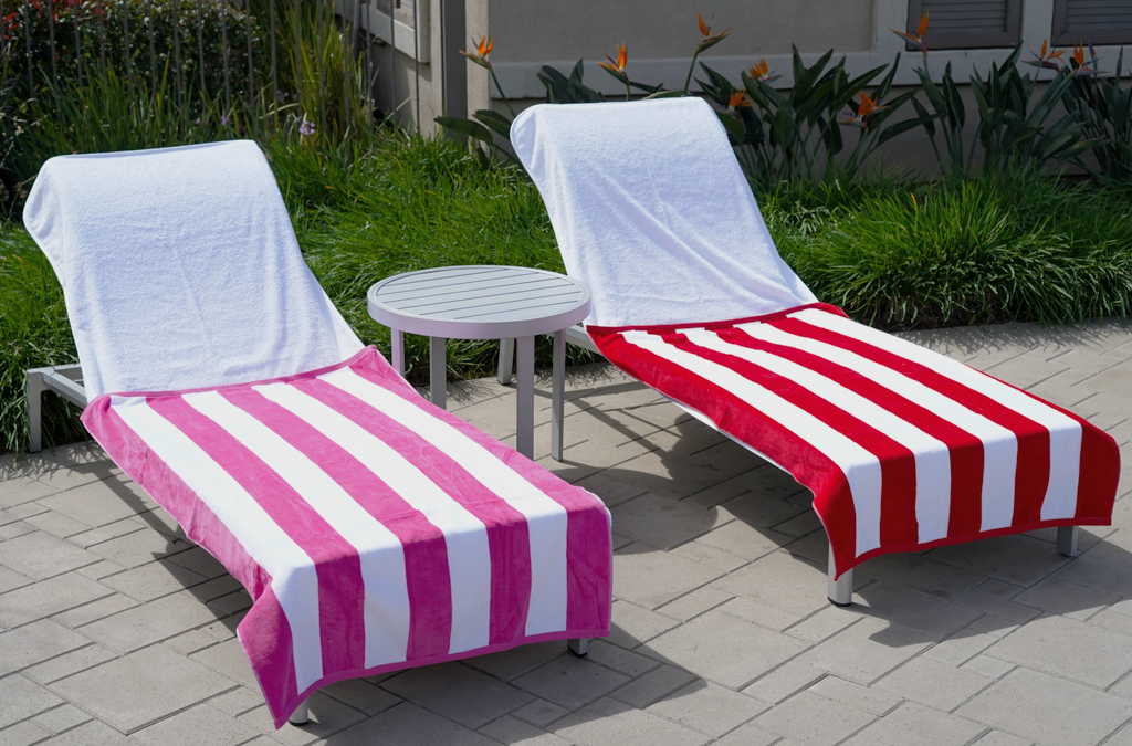 The FatTowels Premium Cabana Stripe Velour Beach Towel delivers a perfect balance of comfort, absorbency, and timeless design. Its velour surface provides a plush feel for relaxing poolside or on the sand, while the terry backing ensures effective drying after a swim. The classic striped pattern adds a clean, upscale aesthetic that fits seamlessly into resort, beach, and backyard settings.