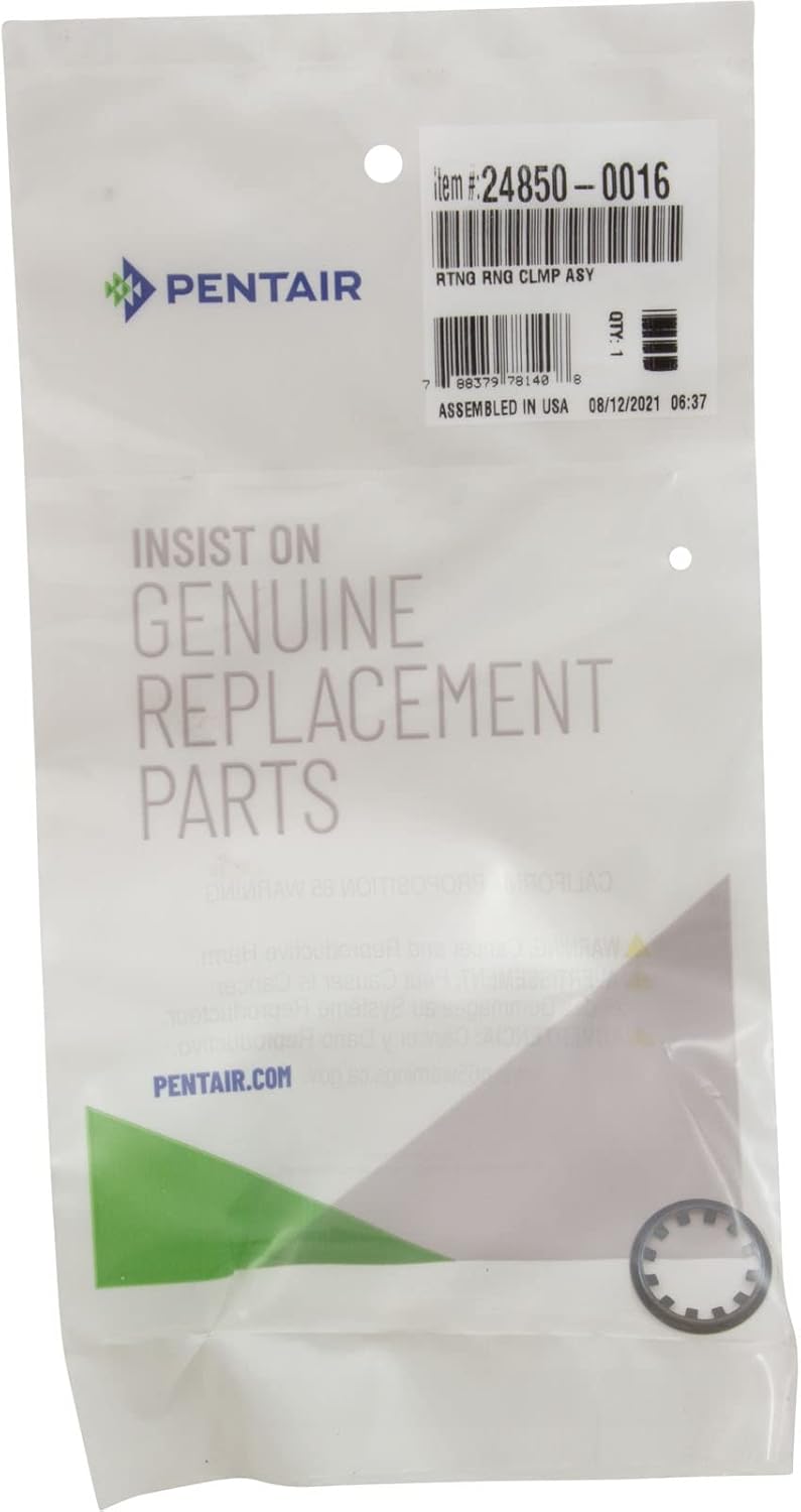 The Pentair 24850-0016 clamp retaining kit is a replacement fastening component designed for Pentair pool and spa filtration systems. This 1-inch white retaining kit is used to secure clamp assemblies that hold filter tank sections together. Its durable construction helps maintain proper clamp tension and ensures the filter housing remains sealed during pressurized filtration operation.