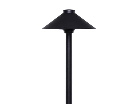 The Sollos 27554 Adjustable Height Traditional Hat Path Light combines classic design with durable performance to elevate your landscape lighting. The 7.5-inch hat delivers a wide spread of light, perfect for illuminating pathways, garden beds, and outdoor living areas. Constructed with a weather-resistant textured black finish and adjustable stem, this fixture offers both versatility and style. Built to withstand the elements, it’s a reliable choice for both residential and commercial installations. This listing includes the fixture only—lamp and mounting components are available separately.