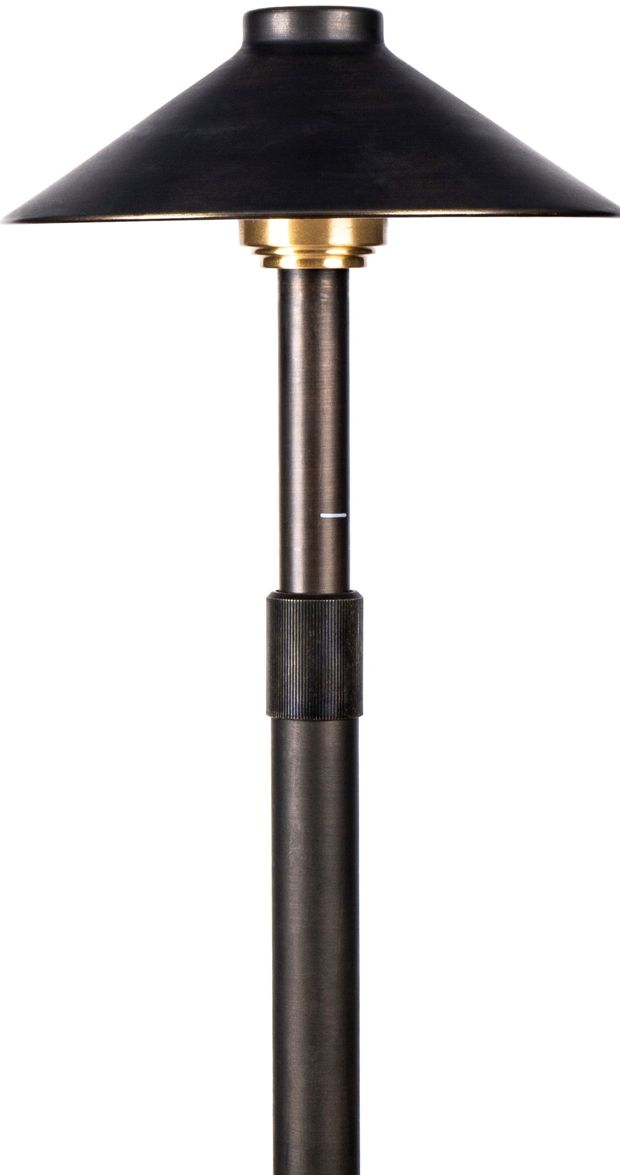 Sollos | 915514 | Traditional Path Light – 7.5" Hat, 18" Stem - 12V - Antique Brass – Fixture Only (7-10 day lead time)
