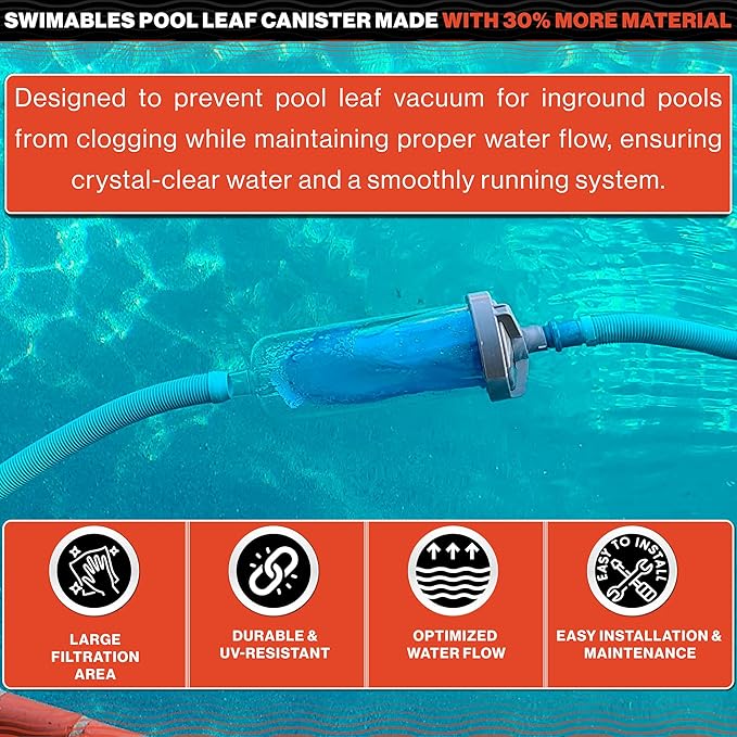 Enhance your pool maintenance with the Swimables SW-10-531 Leaf Canister. Featuring a heavy-duty basket and large capacity, it efficiently traps debris, reducing filter clogs and extending equipment life.