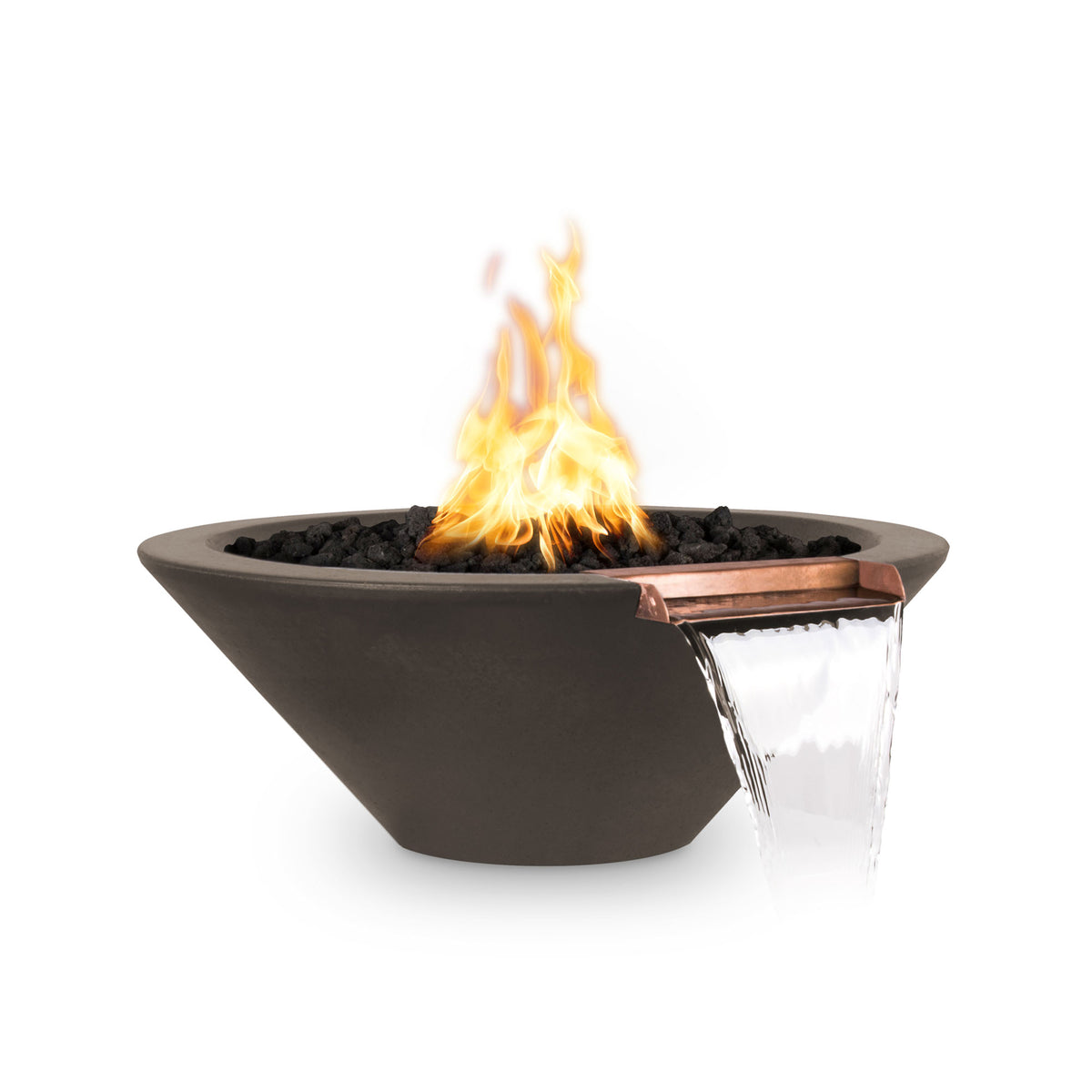 Product Overview The Outdoor Plus “Cazo” Fire & Water Bowl in GFRC Concrete elevates outdoor living spaces by combining two captivating elements—flame and flowing water—into a single, beautifully sculpted feature. Each bowl is handcrafted from Glass Fiber Reinforced Concrete, offering reduced weight, increased strength, and superior resilience against harsh environmental conditions. The Spanish-inspired rounded form creates an inviting presence, while the integrated scupper produces a controlled water flow that pairs elegantly with the steady Natural Gas flame. Available in 24”, 31”, 36”, and 48” sizes and an array of color finishes, the Cazo adapts effortlessly to luxury poolscapes, upscale patios, resort environments, and custom-designed outdoor living areas. Its durable construction, long-lasting performance, and artisan craftsmanship ensure a visually stunning centerpiece that enhances ambiance year-round. Proudly made in the U.S.A., the Cazo Fire & Water Bowl offers unmatched blend of style, function, and reliability for premium outdoor installations.